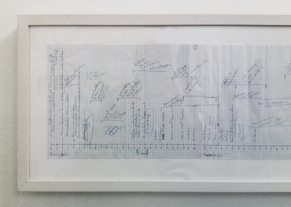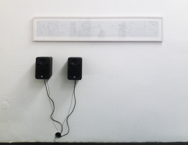 | Nikos Arvanitis Surviving Desire Sound, duration: 2’ 30’’, ballpen on paper, 2014 ![]() The artist uses, as primary reference material, a video recording of violent clashes between demonstrators and the police during the demonstrations of the 12. February 2012 in Athens. He analyzes the composition of the soundscape of the scene and reproduces it by combining voices and sounds from the use of everyday objects, recorded in a studio. The final result consists exclusively of reproduced - artificial - sounds. The drawing is the script of the scene, where the visual plot and sonic texture of the primary material are recorded. ![]() |